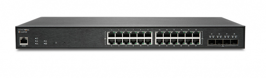 SonicWall SWS14-24FPOE. Switch type: Managed, Switch-laag: L2. Type basis-switching RJ-45 Ethernet-poorten: Gigabit Ethernet (10/100/1000), Aantal basis-switching RJ-45 Ethernet-poorten: 24, Console port: RJ-45. MAC-adrestabel: 32000 entries, Switchingcapaciteit: 128 Gbit/s. Netwerkstandaard: IEEE 802.1p, IEEE 802.1x. Power over Ethernet (PoE). Rack-montage, Vormfactor: 1U
