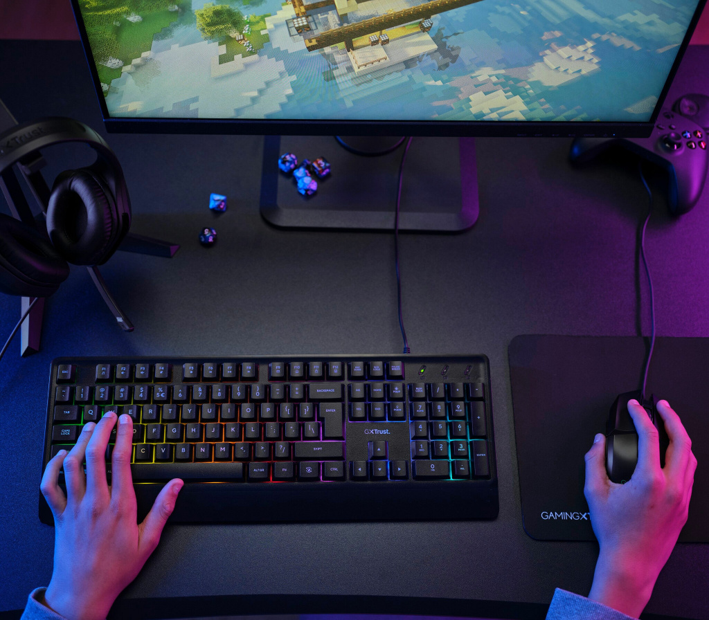 4-in-1 Gamingpakket met lichtgewicht headset, morsbestendig RGB-toetsenbord, verlichte muis en muismat