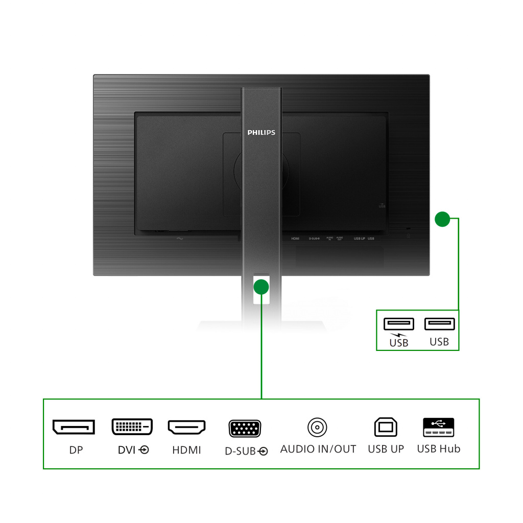 De milieuvriendelijke 27 inch monitor van Philips is ontworpen voor duurzaamheid en productiviteit. Het design is ontzettend energiezuinig en biedt nog meer energiebesparing. De PowerSensor en LightSensor verminderen het energieverbruik nog sterker en bieden helder beeld.