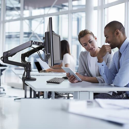 Ergotron LX Series 45-245-224. Montage: Klem/doorvoer, Maximale gewichtscapaciteit: 18,1 kg, Maximale schermgrootte: 68,6 cm (27″), Montage interface compatibiliteit (min): 75 x 75 mm, Montage interface compatibiliteit (max): 100 x 100 mm. In hoogte verstelbaar, Bereik kantelhoek: -5 – 75°. Kleur van het product: Zwart
