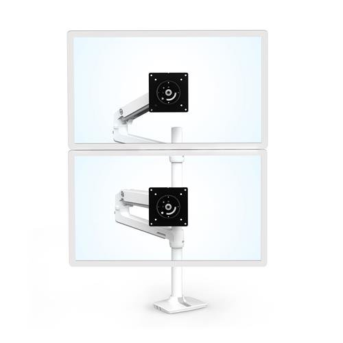 Ergotron LX Series LX Dual Stacking Arm. Montage: Klem, Maximale gewichtscapaciteit: 9,1 kg, Maximale schermgrootte: 101,6 cm (40″), Montage interface compatibiliteit (min): 75 x 75 mm, Montage interface compatibiliteit (max): 100 x 100 mm. In hoogte verstelbaar, Bereik kantelhoek: 5 – 70°. Kleur van het product: Wit