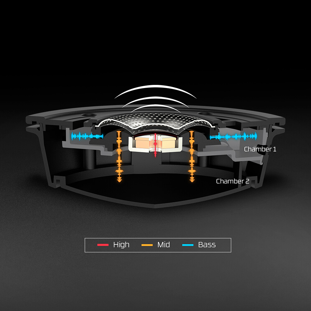 Profiteer van maar liefst 300 uur batterijduur[1] en speel meer dan een week lang zonder dat de batterij leeg raakt. Speel meerdere games uit zonder op te hoeven laden, en geniet van het comfort van het stijlvolle kenmerkende HyperX-memory foam en de ademende kunstlederen oorkussens van de Cloud Alpha Wireless. HyperX Dual Chamber Drivers produceren een ongelooflijk helder geluid, want het Dual Chamber-systeem scheidt de middentonen en de hoge tonen van de lage bastonen. In combinatie met DTS Headphone:X[4] Spatial Audio, dat precieze geluidslokalisatie en een adembenemende surround sound biedt, kun je ontsnappen naar je favoriete fantasiewereld of geconcentreerd blijven op de wedstrijd. Controleer de batterijduur, stel de equalizer af en krijg toegang tot meer aanpassingsopties via de gebruiksvriendelijke HyperX NGENUITY-software.