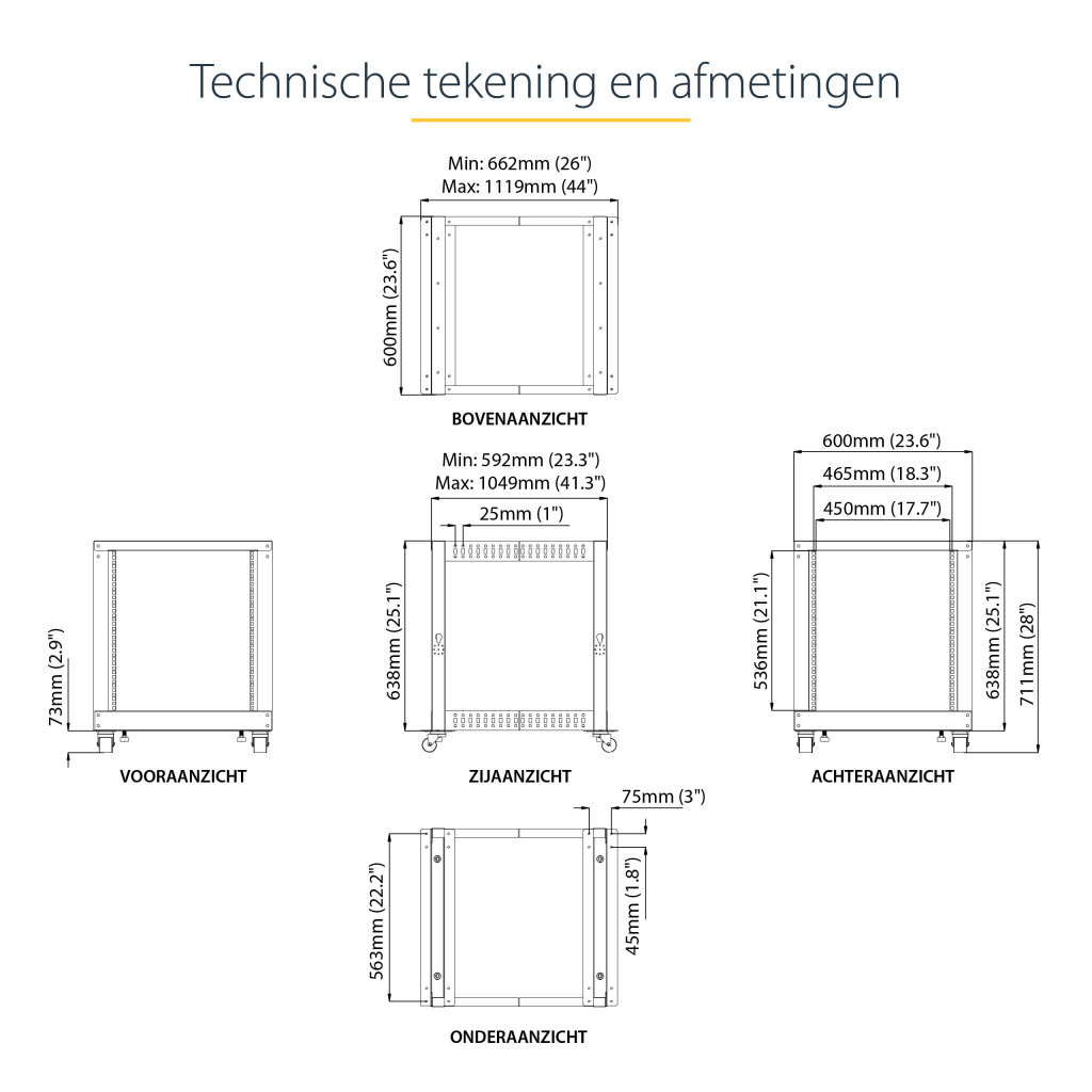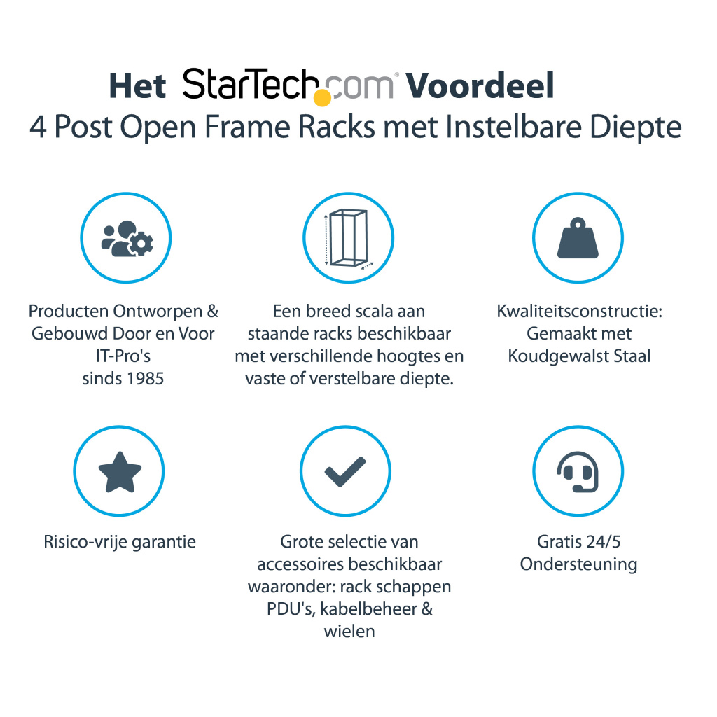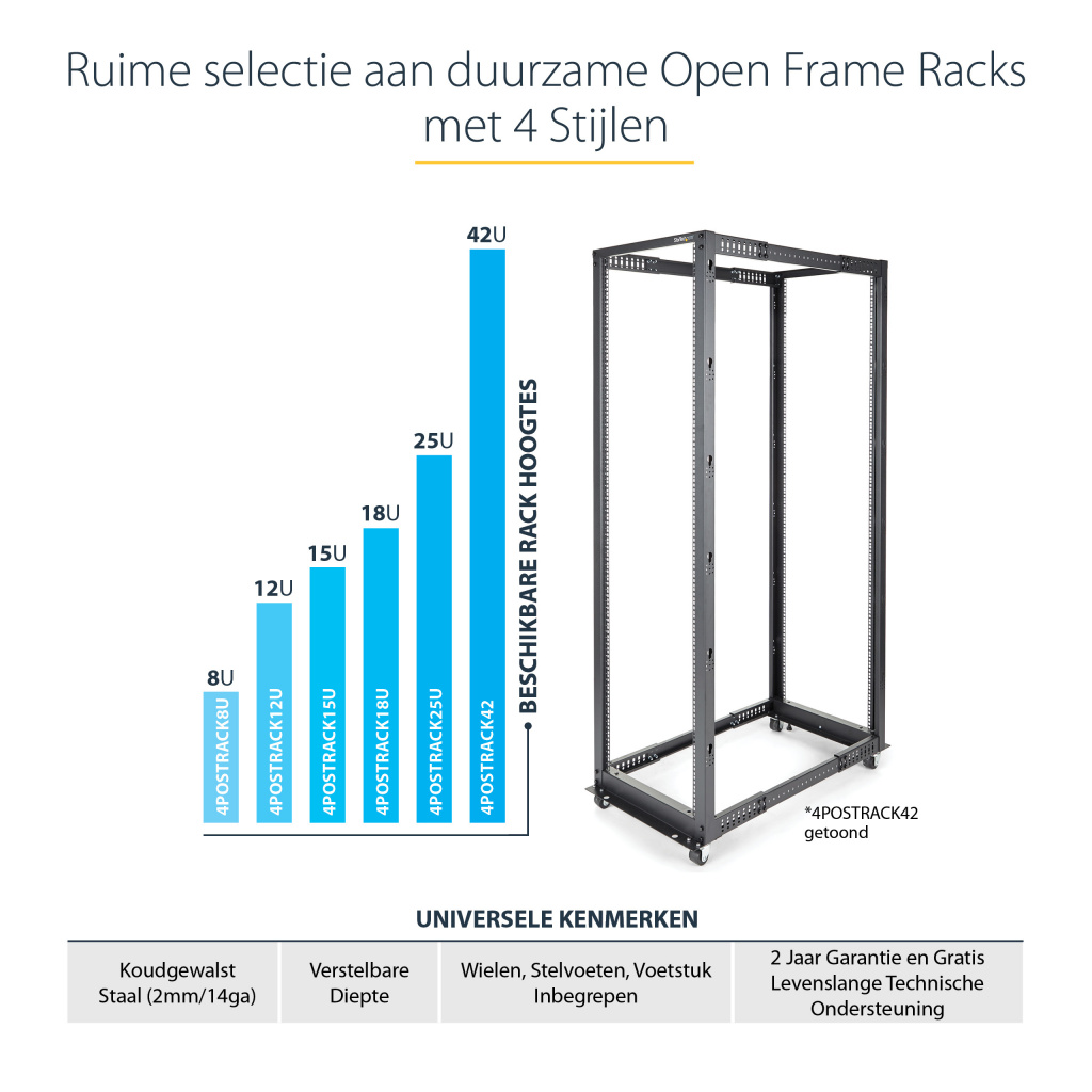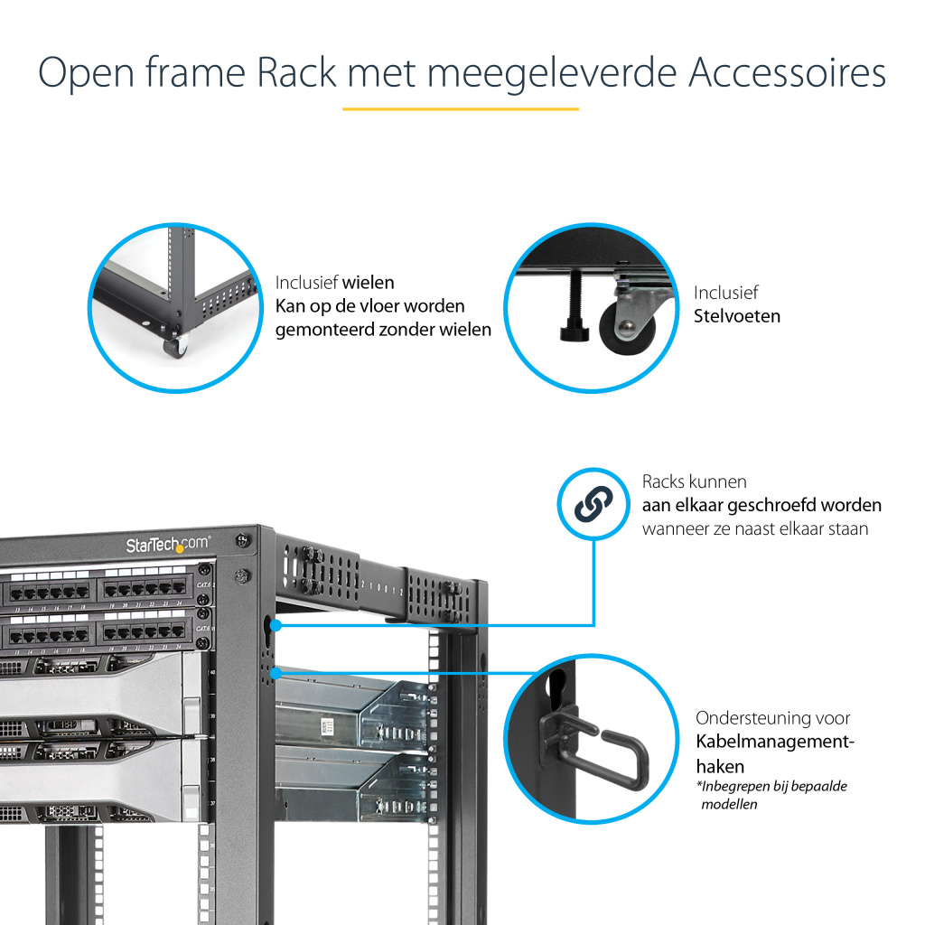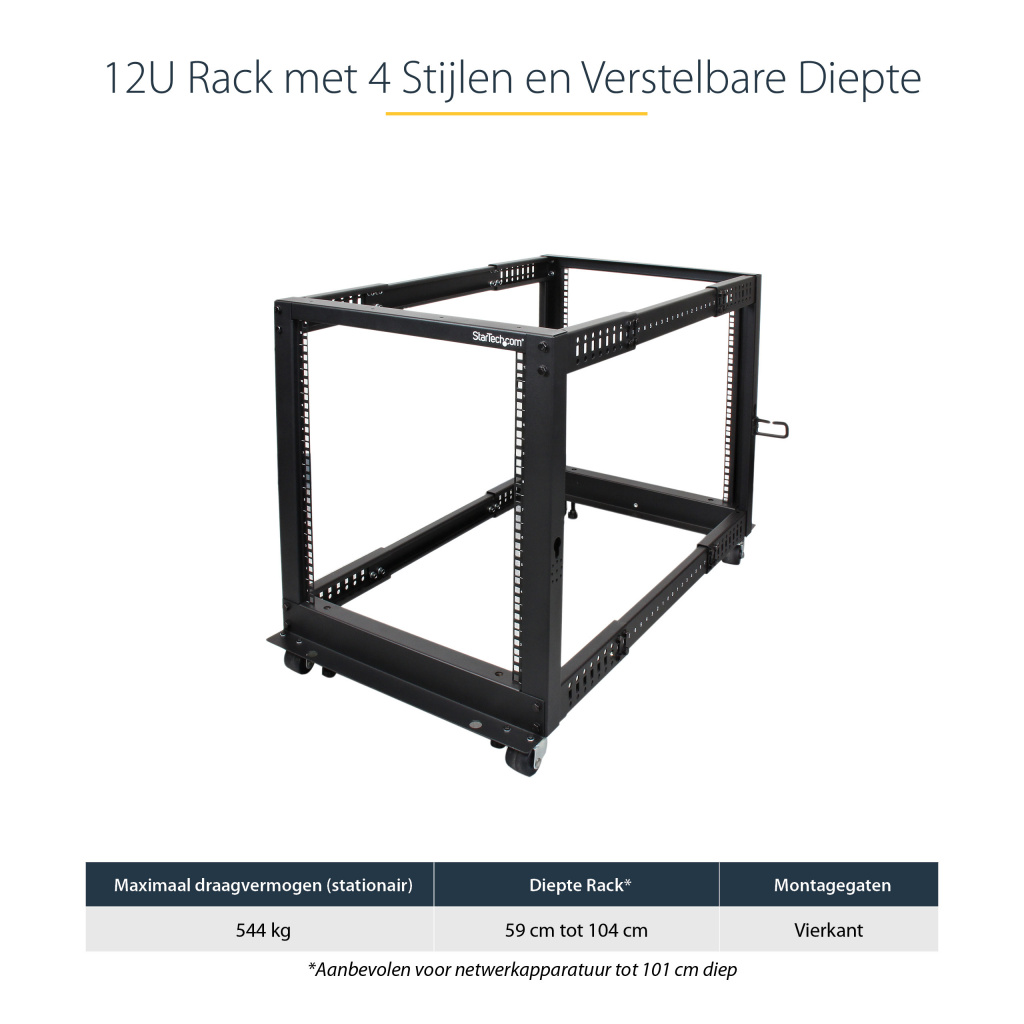 Installeer uw servers, netwerk- en telecommunicatieapparatuur in dit instelbare 12U open-frame rack