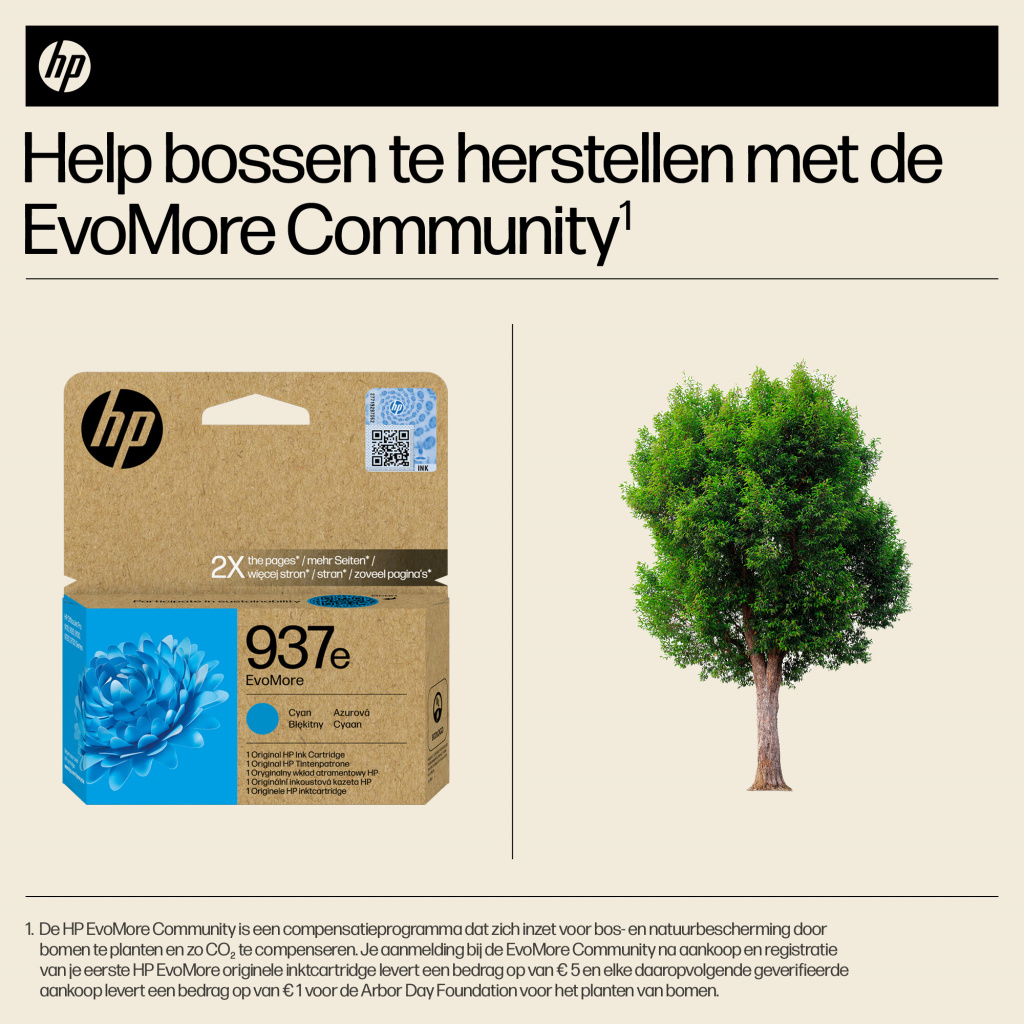 Originele HP EvoMore-inktcartridges, die ontworpen zijn om twee keer zoveel pagina’s te printen als standaardcartridges,[3] zorgen voor een lagere CO₂-uitstoot[2] en kunnen eenvoudig worden gerecycled[4]. Hierbij komen hoge prestaties, kwaliteit en duurzaamheidskenmerken samen.