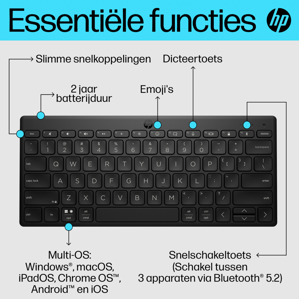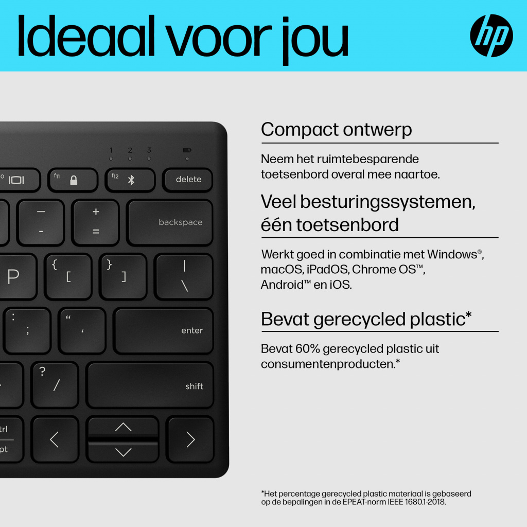 Het is toch gewoon prettiger om op een extern toetsenbord te typen? Dit gestroomlijnde draadloze toetsenbord combineert de productiviteit van een ruime desktop met comfortabele, compacte draagbaarheid om hybride te werken. Met multi-pairaansluitingen is het de perfecte metgezel voor je desktop, laptop, tablet en zelfs je telefoon. Je kunt hem opbergen in je laptoptas of rugzak voor een prettige typervaring die je altijd bijblijft.