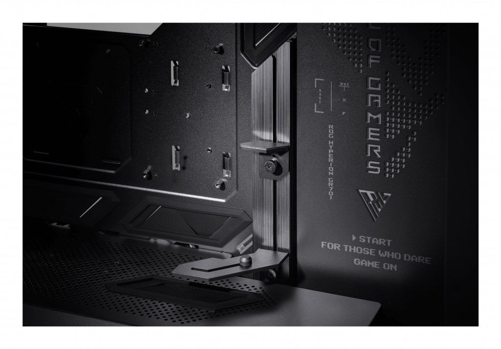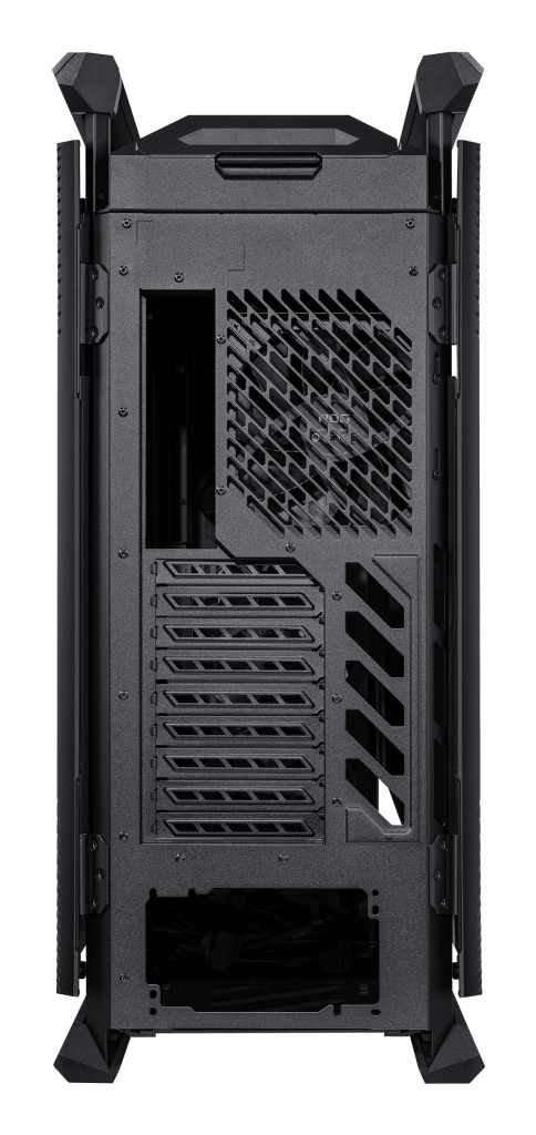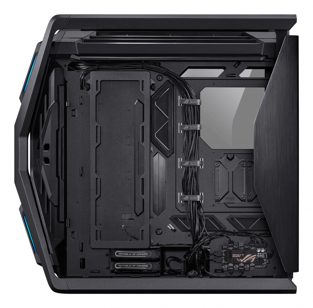 ASUS ROG Hyperion GR701 BTF Edition. Vormfactor: Tower, Soort: PC, Kleur van het product: Zwart, Transparant. Aantal geïntstalleerde ventilators voorkant: 3x 140 mm, Voorste ventilators ondersteunende diameters: 120,140,240,280,360,420 mm, Geïnstalleerde ventilators achterkant: 1x 140 mm. Ondersteunde HDD-groottes: 2.5,3.5″, SSD-vormfactor: 2.5″. Breedte: 268 mm, Diepte: 639 mm, Hoogte: 659 mm. Breedte verpakking: 350 mm, Diepte verpakking: 720 mm, Hoogte verpakking: 715 mm