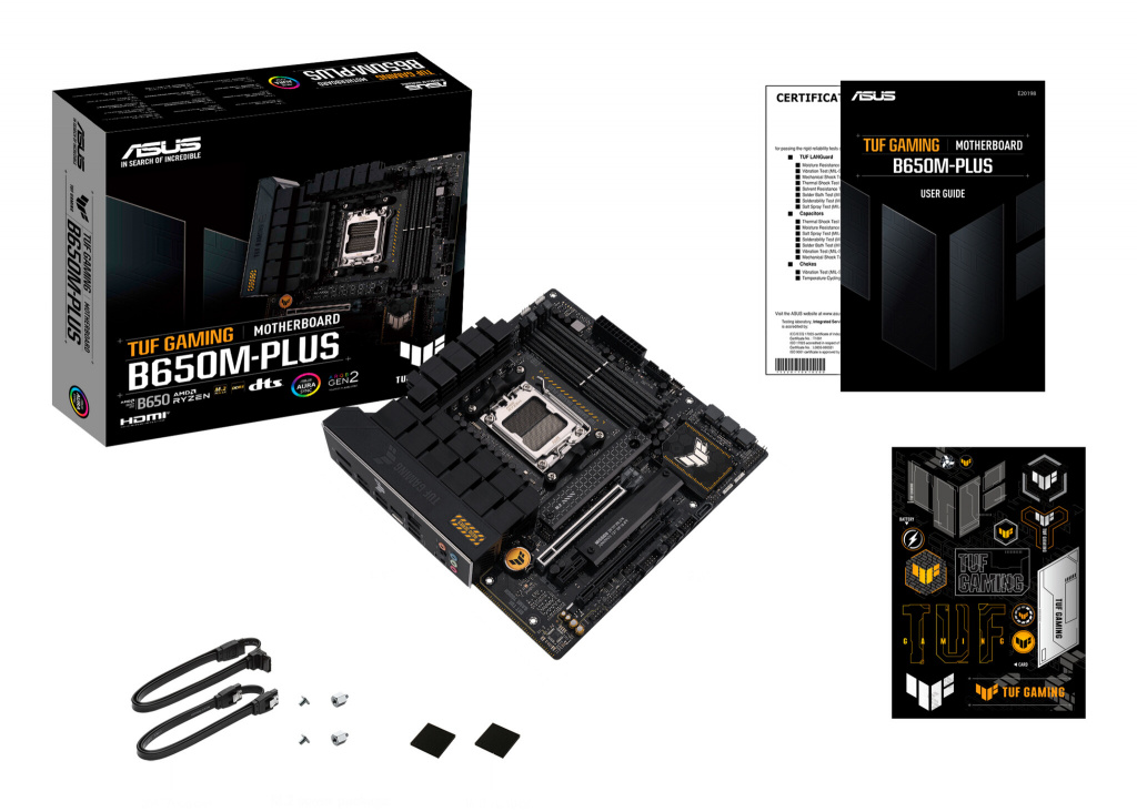 ASUS TUF GAMING B650M-PLUS. Processorfabrikant: AMD, Processor socket: Socket AM5, Compatibele processors: AMD Ryzen™ 3, AMD Ryzen™ 7, AMD Ryzen 9 7th Gen. Ondersteunde geheugen types: DDR5-SDRAM, Maximum intern geheugen: 128 GB, Geheugen slots type: DIMM. Ondersteunde opslagstationinterfaces: M.2, SATA III, Ondersteunde types opslag-drives: HDD & SSD, Soorten RAID: 0, 1, 10. Ethernet interface type: 2.5 Gigabit Ethernet. Component voor: PC, Moederbord form factor: micro ATX, Moederbord chipset familie: AMD