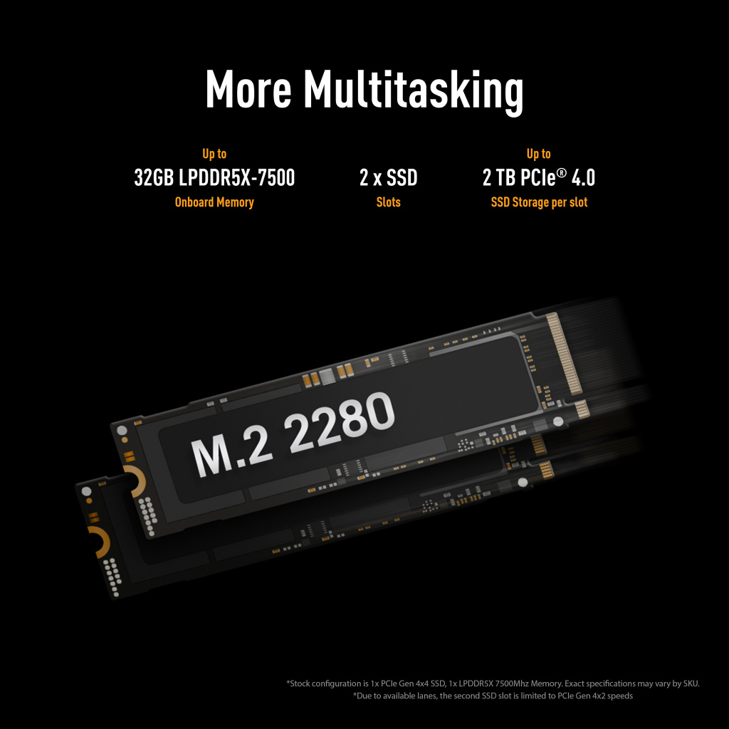 Ondanks het feit dat dit de meest compacte TUF gaming laptop ooit is, beschikt de A14 over een aantal zeer indrukwekkende specificaties voor serieuze Windows 11 gaming. Met tot een AMD Ryzen™ AI 7 350 processor en tot een NVIDIA® GeForce 5060 Laptop GPU kan de A14 moeiteloos de nieuwste games spelen of je workflow op schema houden. Gekoppeld aan maximaal 32GB LPDDR5X 7500MHz geheugen en tot 4TB aan PCIe Gen 4 uitbreidbare opslag, staat deze next-gen AI PC klaar om je productiviteit te verhogen.