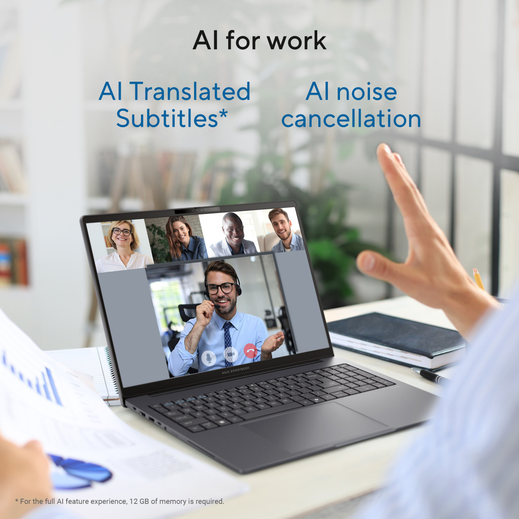 De ASUS ExpertBook B3 AI PC biedt uitgebreide aanpassingsmogelijkheden om u te versterken bij uw dagelijkse zakelijke behoeften. Uitgerust met tot de nieuwste Intel® Core™ Ultra 7 processor met Intel vPro®, Intel AI Boost NPU en Intel Arc graphics, levert deze AI PC solide prestaties om een breed scala aan taken naadloos uit te voeren. De ASUS ExpertBook B3 is voorzien van AI tools zoals ASUS AI ExpertMeet1, Microsoft Copilot2 en AI noise-canceling technologie, voor een ongeëvenaarde productiviteitservaring. Met duurzaamheid op militair niveau3, een volledige reeks I/O-poorten, ultrasnelle Wi-Fi 6E en geavanceerde beveiligingsfuncties, zorgt deze lichtgewicht AI PC voor flexibiliteit en efficiëntie onderweg. Daarnaast ondersteunt de ASUS ExpertBook B3 met zijn lange accuduur, uitzonderlijke beelden en audio, en een milieuvriendelijk ontwerp een duurzame, gestroomlijnde workflow – zodat u productief blijft, waar u ook werkt.