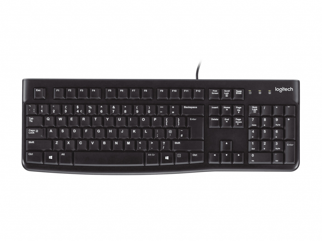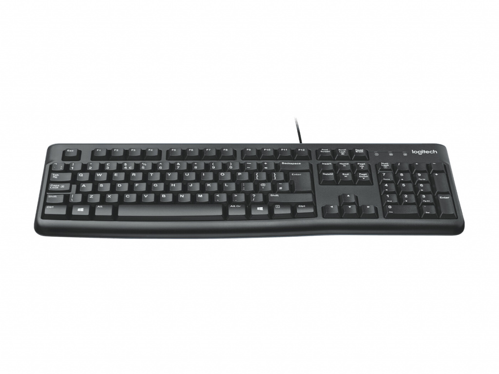 Logitech K120 Corded Keyboard. Connectiviteitstechnologie: Bedraad, Aansluiting: USB, Toetsenbordindeling: QWERTY. Snoerlengte: 1,5 m. Aanbevolen gebruik: Universeel. Kleur van het product: Zwart