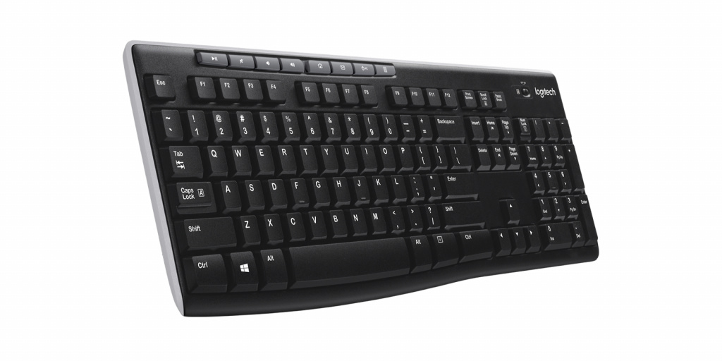 Logitech Wireless Keyboard K270. Toetsenbord formaat: Volledige grootte (100%). Stijl toetsenbord: Recht. Connectiviteitstechnologie: Draadloos, Aansluiting: RF Draadloos, Toetsenbordindeling: QWERTY, Aanbevolen gebruik: Kantoor