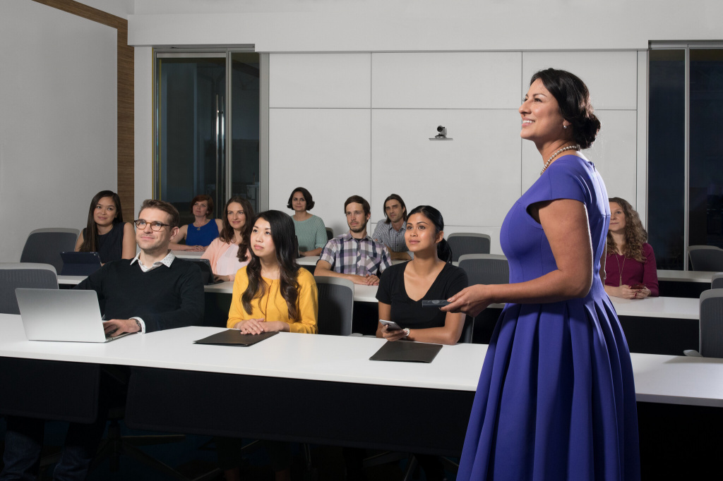 De PTZ Pro 2 past perfect in klaslokalen, collegezalen en grote vergaderruimten. Stel in op breedbeeld met een ruim gezichtsveld van 90° of stel scherp op presentatoren, panelleden en whiteboards met flexibele pan- en kantelbedieningen. Een 10x zoomlens met autofocus brengt sprekers en hun visuele hulpmiddelen perfect in beeld, en biedt uitstekende details en helderheid voor externe deelnemers en opnamesystemen.