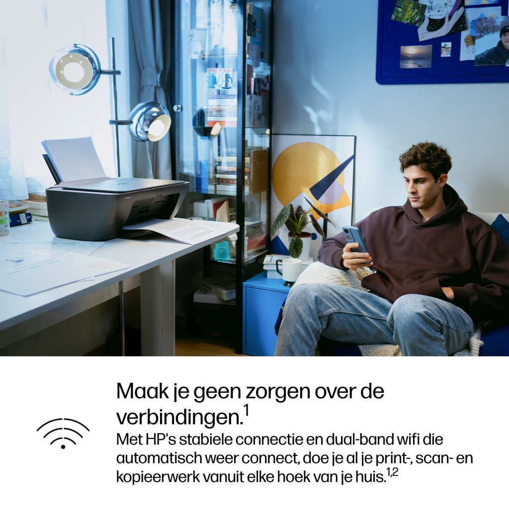 Thuis printen is supereenvoudig De installatie van de printer is een koud kunstje met de superhandige printapp van HP. Print alles, van retourlabels tot kleurrijke en leerzame printwerkjes. Print gemakkelijk en geef creativiteit en leren een boost.[3]. Geschikt voor HP Instant Ink