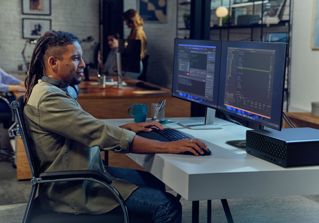 Ervaar de kracht van de HP EliteDesk 8 SFF G1i AI-pc die ideaal is voor kleine werkruimtes. Deze veilige, schaalbare en krachtige AI-pc is voorzien van de nieuwste Intel Core™ Ultra-processor[2] met een 13 TOPS NPU[3] en voorziet in al je multitaskingbehoeften.