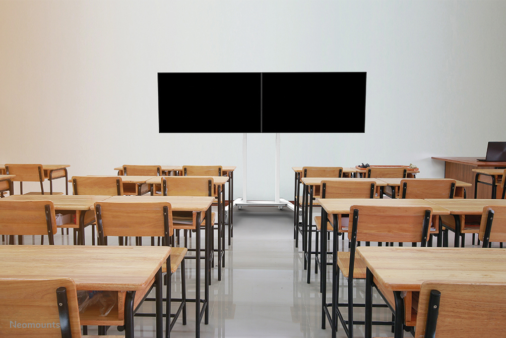 De Neomounts ADM-875WH2 is een optionele dual screen adapter voor de FL55-875WH1 mobiele vloersteun en WL55-875WH1 wandsteun. De adapter maakt het mogelijk om 2 schermen van 42″ tot 65″ met een maximaal gewicht van 40 kg per scherm te installeren. De in hoogte verstelbare beugels zorgen voor een perfecte uitlijning van de schermen. Het is mogelijk deze beugels te vergrendelen d.m.v. een hangslot (niet meegeleverd). Het is ook mogelijk om een XXL-scherm te installeren tot VESA 2000×600 mm en max. 80 kg.