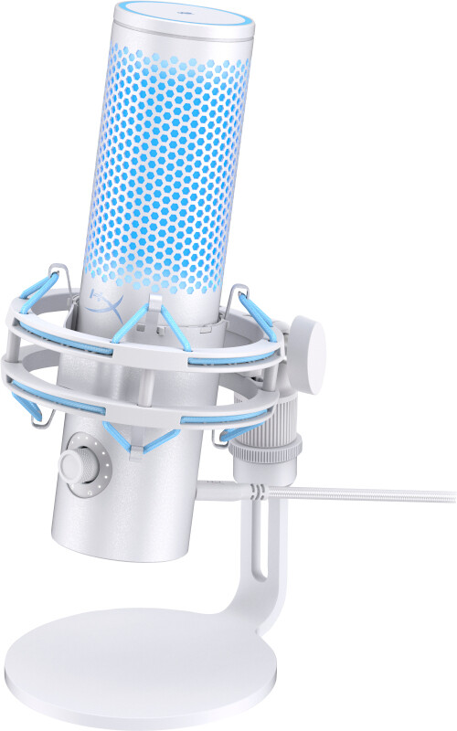 De HyperX QuadCast 2 is een verbetering van het origineel dat een grote favoriet was onder gamers, streamers en content creators overal ter wereld. Alle favoriete features zijn er nog: die iconische vette verlichting, de tap-to-mute-sensor, 4 opname-instellingen, 3,5 mm hoofdtelefoonaansluiting en meegeleverde shock mount en bureaustandaard, maar nu met een hoop nieuwe toevoegingen en verpakt in een strak, volledig aluminium design. De QuadCast 2 heeft een verbeterde 24-bits, 96k Hz opnamefunctie voor een ervaring van studiokwaliteit. De vernieuwde, afneembare shockmount biedt betere prestaties en heeft innovatieve geveerde pinnen zodat je de microfoon eenvoudig kunt verwijderen en een universele shockmount kunt gebruiken[1]. Naar aanleiding van feedback van onze fans heeft de QuadCast 2 nu ook een multifunctionele knop waarmee je alles op de microfoon zelf kunt bedienen. De knop regelt de microfoonversterking, het afspeel- en monitoringvolume en schakelt tussen opname-instellingen. Dankzij de ledindicator hoef je niet langer de software te openen om de actuele status van de microfoon te zien. Via HyperX NGENUITY kun je de lichteffecten veranderen en de microfoon tunen. De HyperX QuadCast 2 – De nieuwe standaard voor streamingmicrofoons.