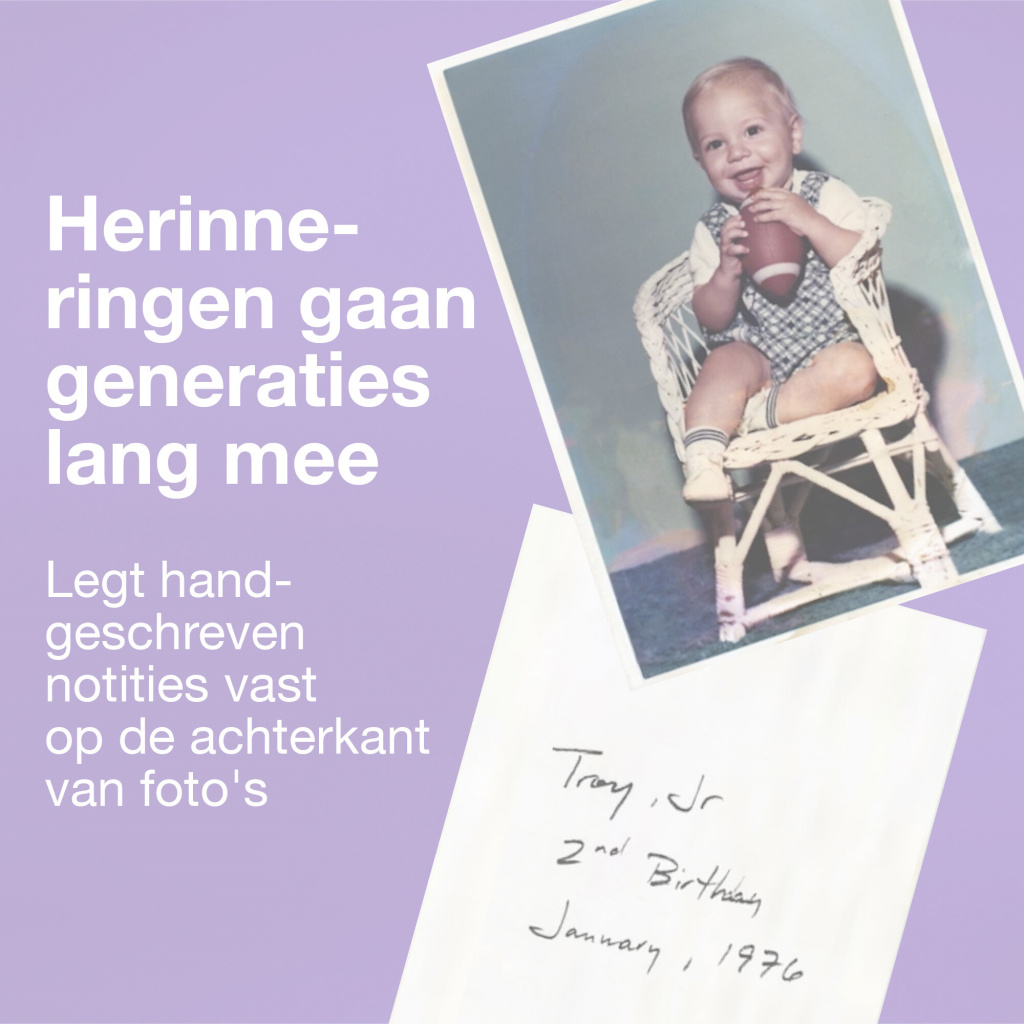 Het digitaliseren van uw collectie geprinte foto’s hoeft helemaal niet lastig of tijdrovend te zijn, want deze scanner met automatische documentinvoer kan tot wel 30 foto’s in 30 seconden scannen.* U kunt standaard-, vierkante, panoramische en instantfoto’s scannen, variërend van 9 x 13 cm tot en met 21 x 91 cm (panoramisch). En dankzij de intelligente functies kan het apparaat vaststellen wanneer het de achterkant van een foto moet scannen, zodat ook de speciale met de handgeschreven notities worden vastgelegd.