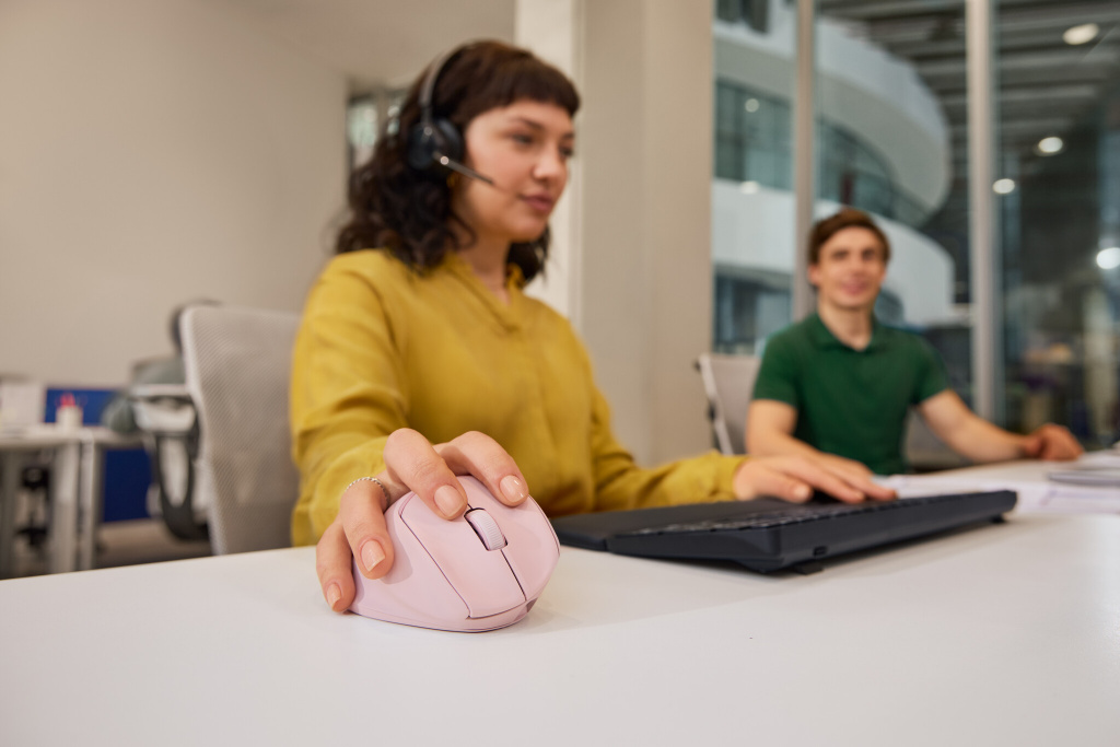 Maak lange dagen licht met een muis die meteen comfort biedt. De semi-verticale kanteling biedt volledige handsteun, terwijl twee draadloze opties, snel verticaal en horizontaal scrollen en snelladen je de hele dag productief houden.