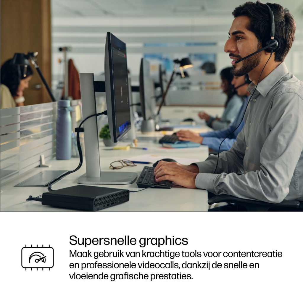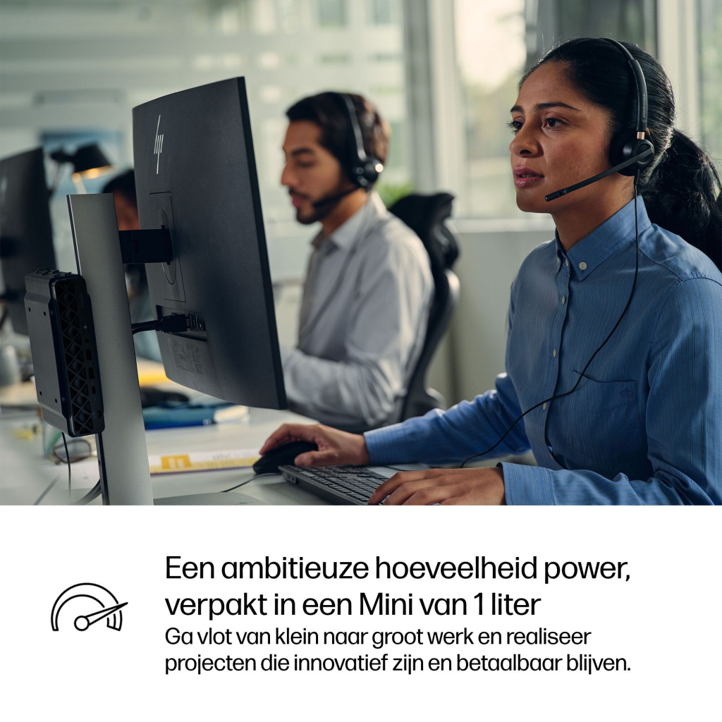 De HP ProDesk 4 Mini G1i Desktop AI-pc biedt zakelijke prestaties, beveiliging en flexibele installatie, allemaal met maar één kabel, voor elk bedrijf. Deze kleine, maar krachtige pc van één liter heeft genoeg power voor grote en kleine bedrijven, met een krachtige Intel CPU[2] met een 13 TOPS NPU.[5] Ontdek wat AI voor je kan doen!