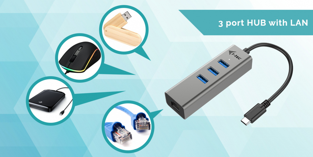 i-tec Metal USB-C HUB 3 Port + Gigabit Ethernet Adapter. Kleur van het product: Grijs, LED-indicatoren: LAN, Chipset: Realtek 0411, Realtek 8153. Breedte: 96 mm, Diepte: 30 mm, Hoogte: 21 mm. Breedte verpakking: 145 mm, Diepte verpakking: 130 mm, Hoogte verpakking: 25 mm. Ondersteunt Windows: Windows 10 Education, Windows 10 Education x64, Windows 10 Enterprise, Windows 10 Enterprise x64,…. Type stroombron: USB