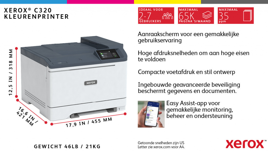 | Printsnelheid (kleur, standaard, A4/US Letter) | 35 ppm |