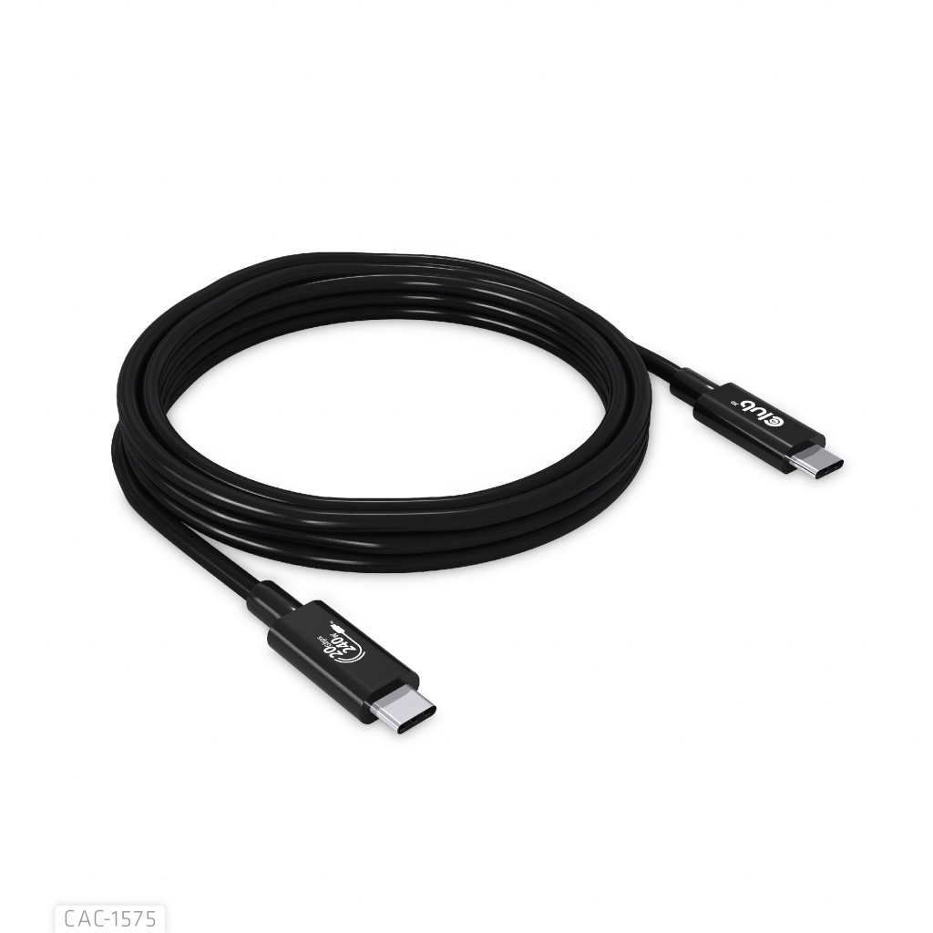 CLUB3D USB4 Gen2x2 Type-C Bi-Directional Cable 4K60Hz, Data 20Gbps, PD 240W(48V/5A) EPR M/M 2m USB IF GECERTIFCIEERD. Snoerlengte: 2 m. Aansluiting 1: USB C, Aansluiting 2: USB C, USB-versie: USB4 Gen 2×2, Max. overdrachtssnelheid: 20 Gbit/s, Kleur van het product: Zwart