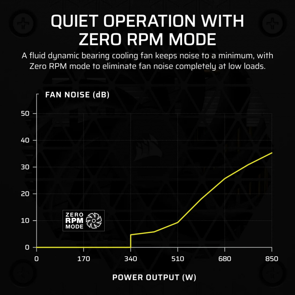 Corsair CP-9020256-EU. Totaal vermogen: 850 W, AC-ingangsspanning: 100 – 240 V, AC-ingangsfrequentie: 47 – 63 Hz. Motherboard power connector: 24-pin ATX, Lengte stroomkabel moederbord: 61 cm, Lengte SATA-stroomkabel: 115,455,800 mm. Bedoeld voor: PC, Vormfactor van de voeding (PSU): ATX, 80 PLUS certificatie: 80 PLUS Gold. Kleur van het product: Zwart, Type koeling: Actief, Ventilator diameter: 14 cm. Meegeleverde kabels: AC