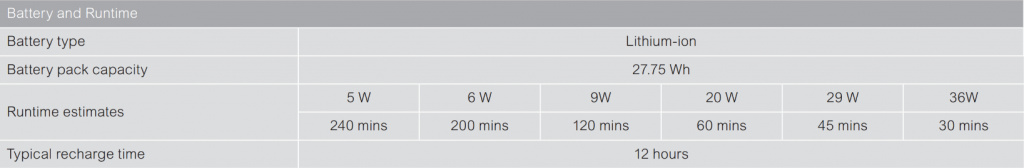 Met een accu van 7500mAh / 27.75Wh kan hij, afhankelijk van de aangesloten apparatuur, tot 4 uur* runtime bieden. *Bij een load van 5 Watt.
