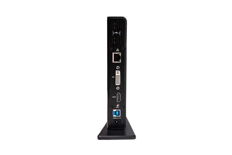 Met de geavanceerde DisplayLink™ DL-3900-chip aan de binnenkant, maakt het USB Gen1 Dual Display Docking Station het gebruik van twee externe High Definition-monitoren mogelijk via de HDMI™- en DVI-I-uitgang. Het heeft een RJ 45 Ethernet-poort voor een betrouwbare, snelle bedrade netwerkverbinding en biedt in totaal 6 USB-poorten voor uw randapparatuur en opslagapparaten, evenals een audio-/microfoonuitgang, allemaal verbonden met uw apparaat via een enkele USB-kabel.