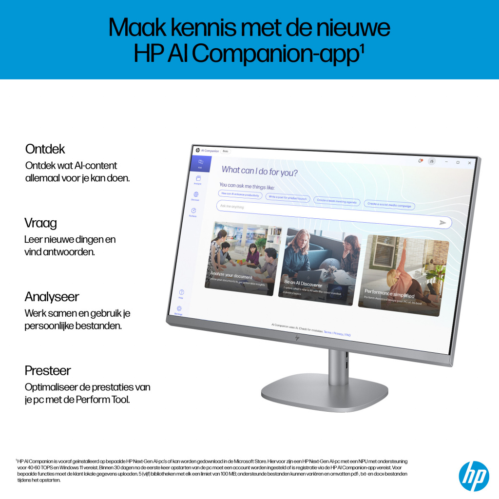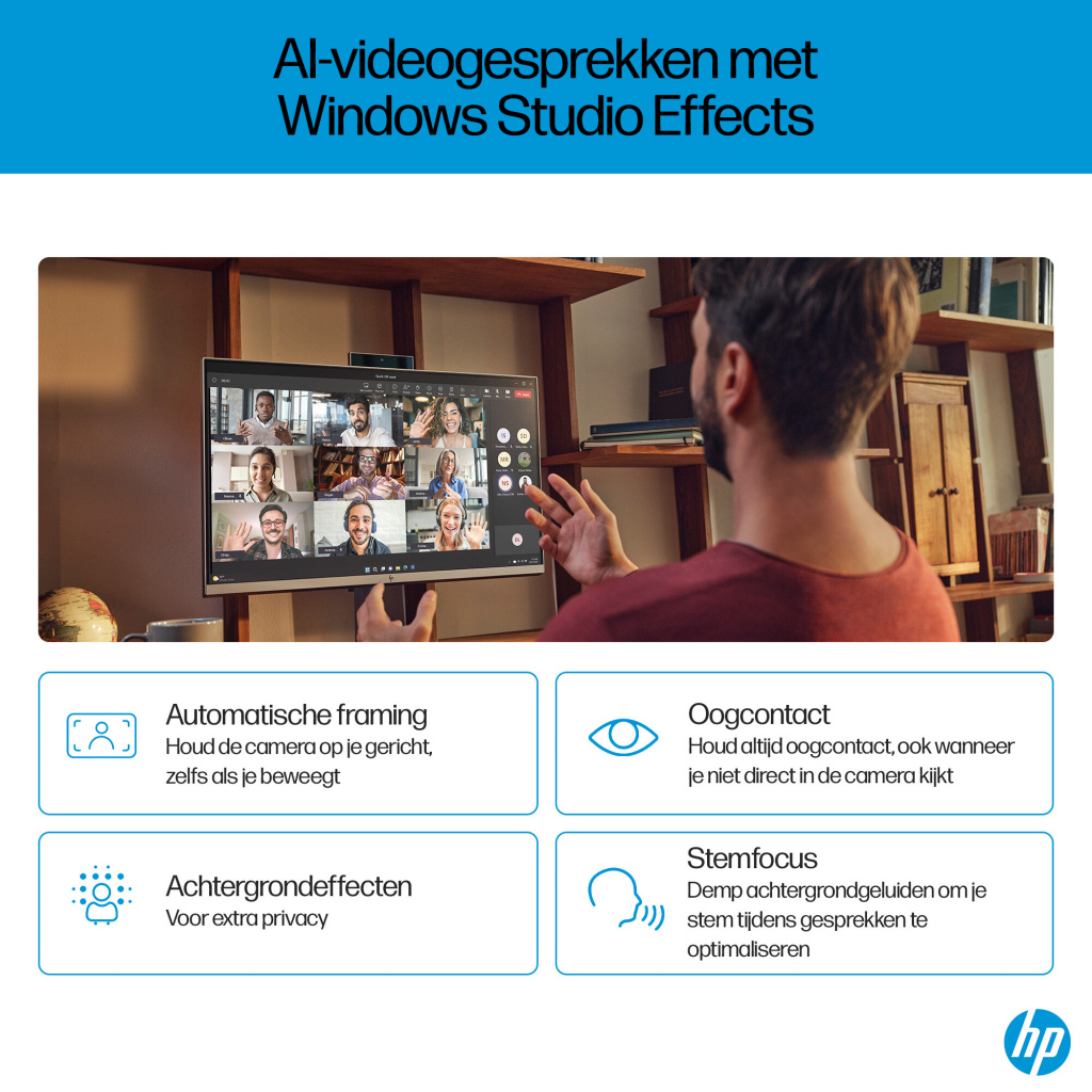 Voer veeleisende taken razendsnel uit met de HP OmniStudio X 27 inch All-in-One desktop-pc met ingebouwde AI-technologie en een krachtige Intel Core™ Ultra-processor[1]. Geniet van adembenemende beelden, audio van bioscoopkwaliteit en AI-gestuurd comfort en welzijnsfuncties die je helpen de dag door te komen zoals jij dat wilt.