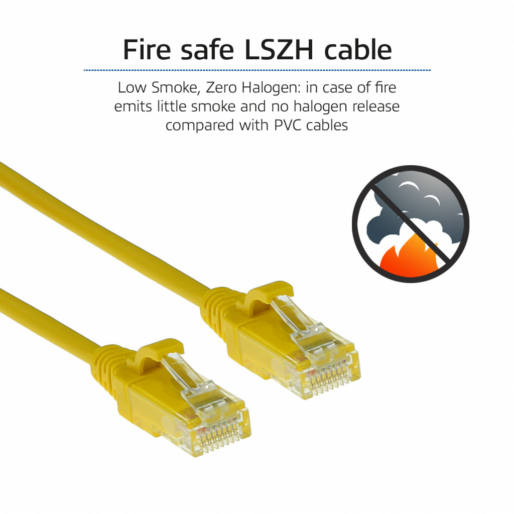 CAT6 U / UTP slimline datacenter ethernetkabels hebben een kleinere diameter (3,8 mm versus 5,9 mm) dan gewone CAT 6 patchkabels en de buigradius is ook kleiner in vergelijking met reguliere patchkabels dit alles zorgt voor een betere luchtstroom in de netwerk kast.