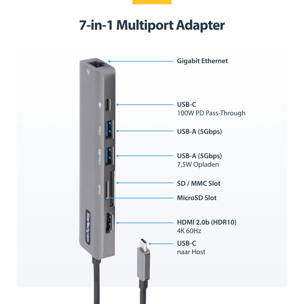 USB Type-C Multiport Adapter | 4K 60Hz | HDMI 2.0 | 100W Power Delivery Passthrough | SD & microSD