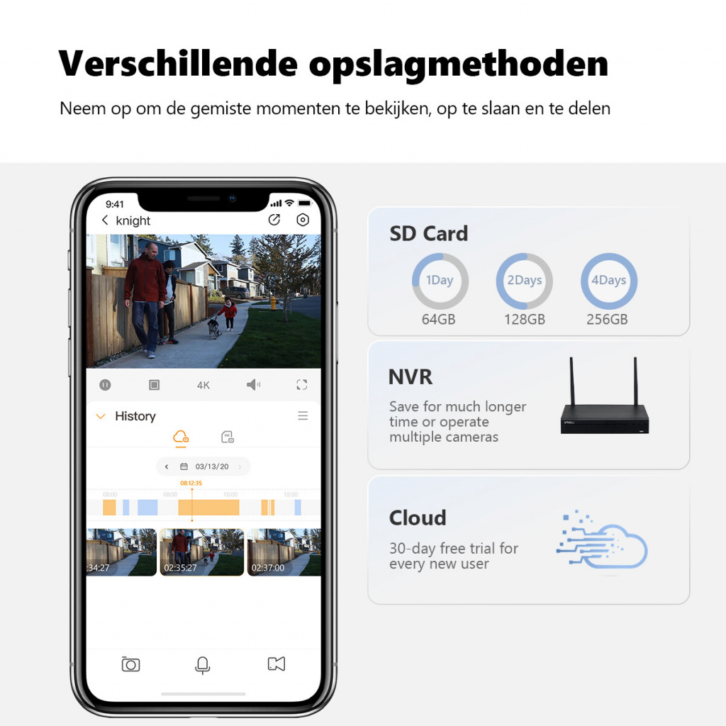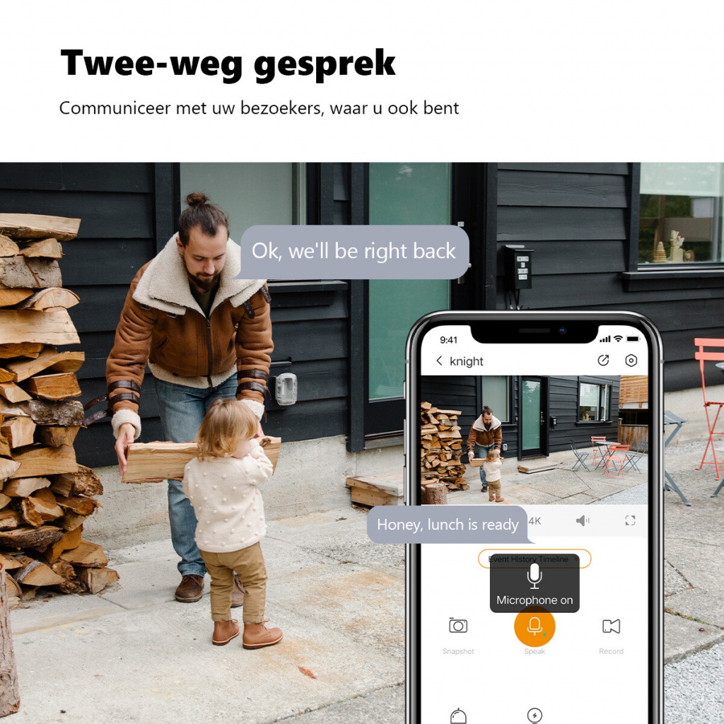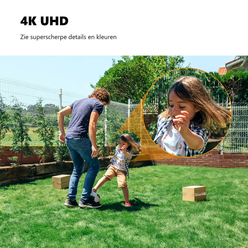 Met deze beveiligingscamera ontgaat er geen enkel detail aan het oog. Verder beschikt deze buitencamera over geavanceerde AI detectie. Hierdoor kunnen personen, maar ook voertuigen en huisdieren, accuraat worden gedetecteerd. De Knight 4K-camera beschikt over de mogelijkheid om een detectieregio en detectielijn in te stellen. Indien iets of iemand in deze regio komt of de lijn passeert dan volgt er direct een notificatie. Bovendien beschikt deze camera over slim kleurennachtzicht, tweeweg gesprek en over 2.4GHz/5GHz Dual-band Wi-Fi. Dankzij de IP66 certificering trotseert de Knight iedere weersomstandigheid. Het opslaan van beelden kan zowel via de optionele Cloudservice of lokaal via een SD-kaart.