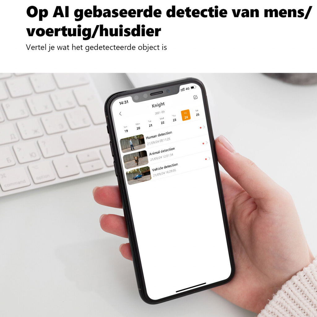 – AI detectie: de camera activeert wanneer iets of iemand wordt gedetecteerd.
