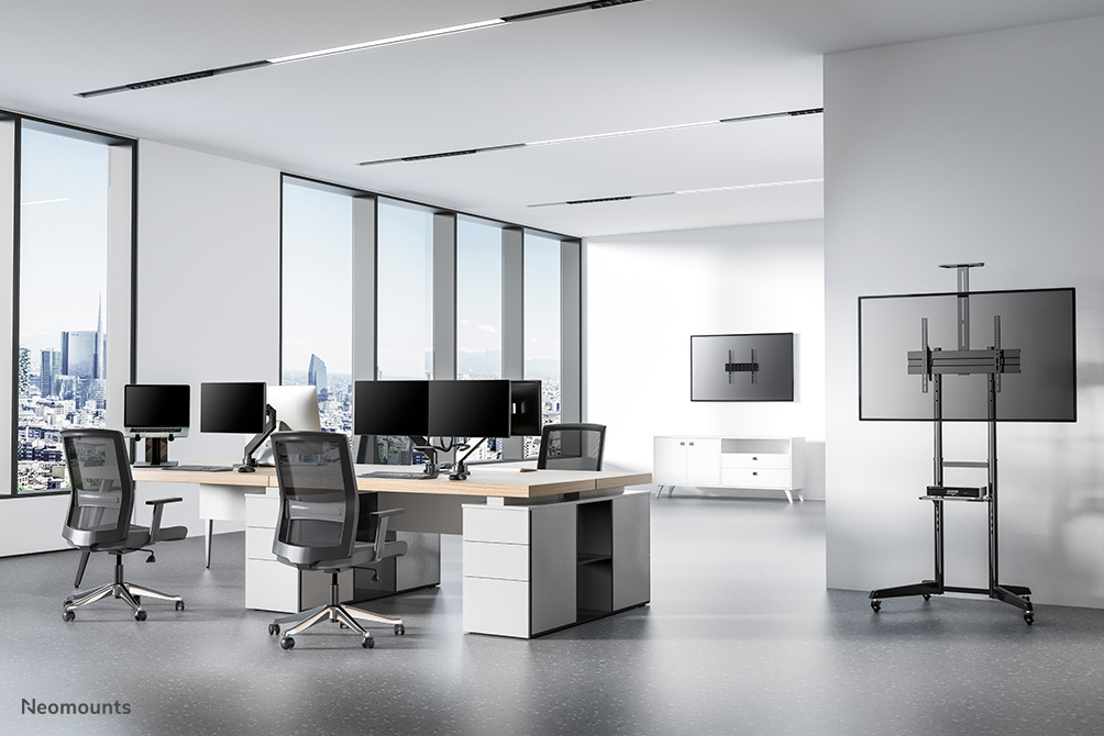 De Neomounts FL50-550BL1 is een mobiele vloersteun voor flat screens tot 70″ met een maximaal draagvermogen van 50 kg. De vloersteun beschikt over vier hoogte-instellingen en een kanteloptie (17°) om de optimale kijkhoek te creëren. Daarnaast is de FL50-550BL1 voorzien van een separaat multimedia- en in hoogte verstelbaar cameraplateau; beide met een maximaal draagvermogen van 5 kg.