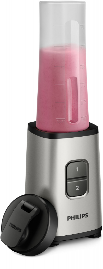 Maak snel en eenvoudig smoothies, shakes, dips en zelfs bevroren cocktails. De motor van 350 W, het 4-sterrenmes en het ergonomische design van de kan leveren al binnen 30 seconden gladde mengsels op, zodat u van een gezond drankje kunt genieten, ook onderweg.