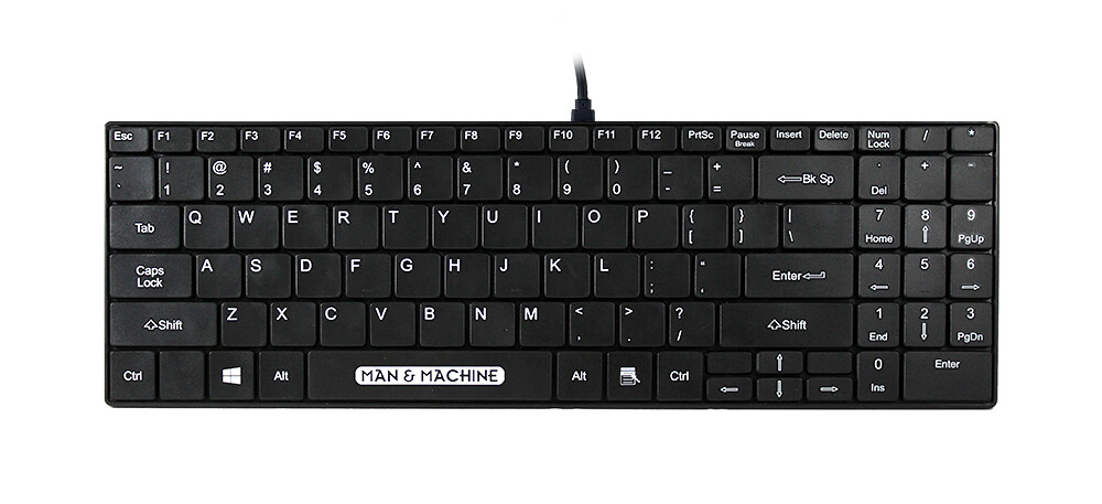 Man & Machine Its Cool. Toetsenbord formaat: Volledige grootte (100%). Stijl toetsenbord: Recht. Connectiviteitstechnologie: Bedraad, Aansluiting: USB, Toetsenbordindeling: QWERTY, Aantal toetsen, toetsenbord: 99. Snoerlengte: 1,5 m. Aanbevolen gebruik: Universeel. Kleur van het product: Zwart