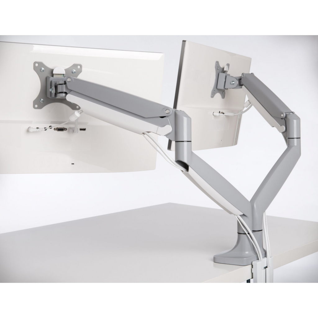 Verbeter uw houding, bevorder een goede oogpositie en ondersteun nek- en schoudercomfort met de Kensington SmartFit™ One-Touch in hoogte verstelbare dual monitorarm. De SmartFit™ One-Touch in hoogte verstelbare dual monitorarm, die ergonomisch is ontworpen voor het bevorderen van welzijn en een hogere productiviteit, bevat de SmartFit-technologie waar Kensington patent op heeft. Met deze technologie kunnen gebruikers de hoogte, diepte en hoek van hun monitors gemakkelijk aanpassen voor individueel comfort. Houd monitors stabiel in elke positie, of u deze nu horizontaal, verticaal, boven elkaar of naast elkaar plaatst. Een ideale monitorarm voor het moderne kantoor en een perfecte aanvulling op de SmartFit™ Sit/Stand Desk (K52804WW).