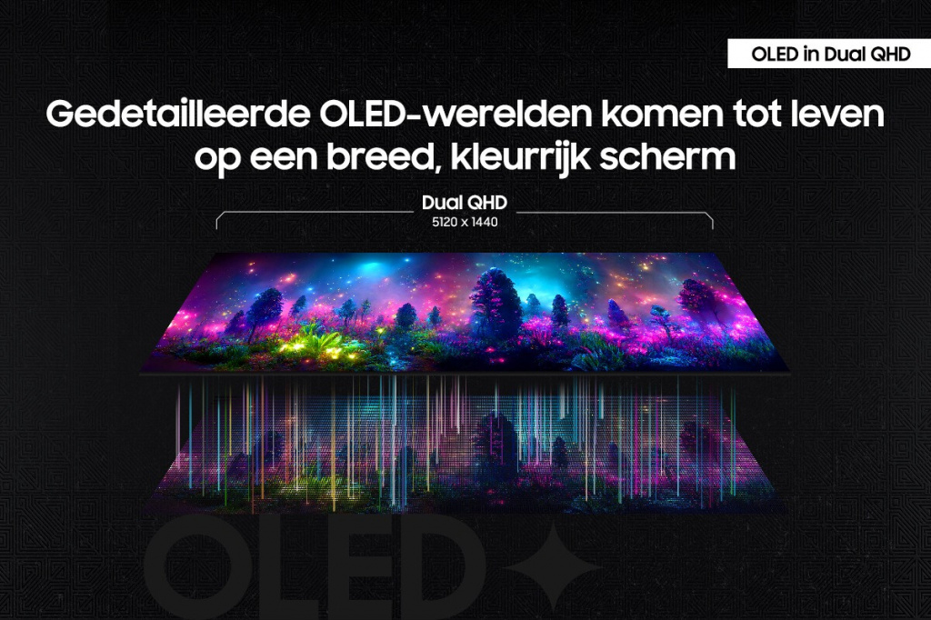 OLED-technologie biedt een breder kleurenspectrum en een levendig beeld voor een meeslepende game-ervaring. Je content komt tot leven op het Dual QHD (5120 x 1440) resolutie-scherm, met een ongekende helderheid en precisie.