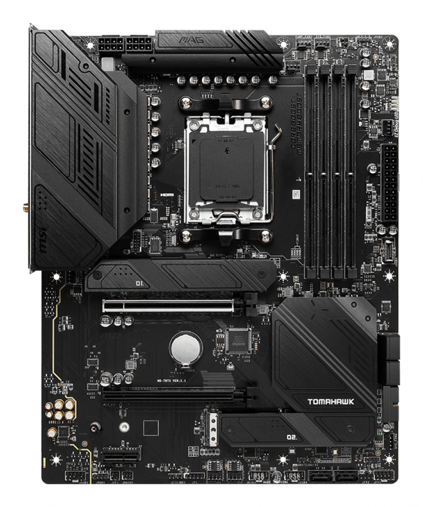 MSI MAG B650 Tomahawk WIFI. Processorfabrikant: AMD, Processor socket: Socket AM5, Compatibele processors: AMD Ryzen 7 7th Gen, AMD Ryzen 9 7th Gen. Ondersteunde geheugen types: DDR5-SDRAM, Maximum intern geheugen: 128 GB, Supported memory clock speeds: 4800,5000,5200,5400,5600,5800,6000,6200,6400,6600 MHz. Ondersteunde opslagstationinterfaces: M.2, SATA, Soorten RAID: 0, 1, 10. Ethernet interface type: 2.5 Gigabit Ethernet, LAN controller: Realtek RTL8125B, Wifi-standaard: Wi-Fi 6E (802.11ax). Component voor: PC, Moederbord form factor: ATX, Moederbord chipset familie: AMD
