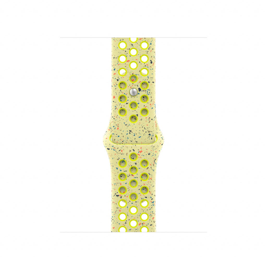 De bandjes zijn gemaakt met een onder druk gevormde gaatjes­­structuur voor meer ventilatie. Ze zijn uitermate sterk en toch verrassend zacht. In de bandjes zijn kleurrijke snippers verwerkt in een willekeurig patroon. Daardoor is elk exemplaar uniek. Het soepele materiaal valt mooi rond je pols en voelt prettig op je huid. De aluminium pinsluiting heeft een mooie, matte afwerking en een uiterst nauwkeurige inscriptie van het Run Swoosh-logo.