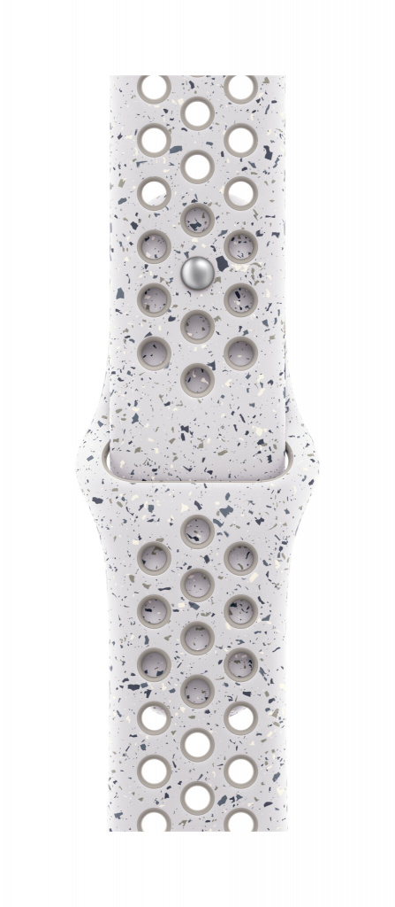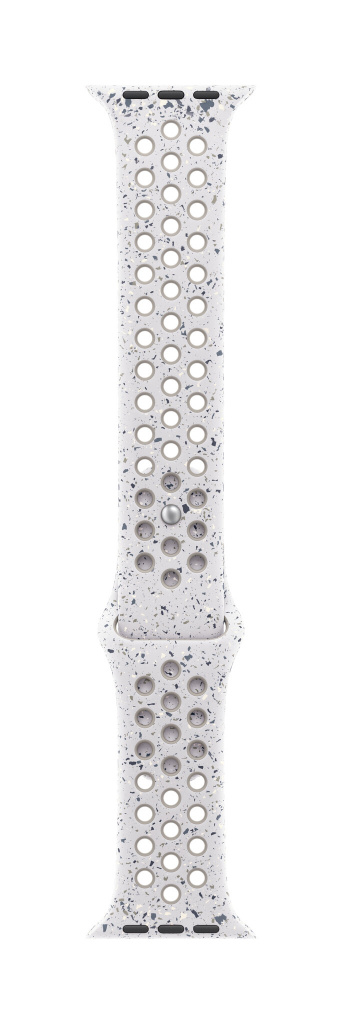 De bandjes zijn gemaakt met een onder druk gevormde gaatjes­­structuur voor meer ventilatie. Ze zijn uitermate sterk en toch verrassend zacht. In de bandjes zijn kleurrijke snippers verwerkt in een willekeurig patroon. Daardoor is elk exemplaar uniek. Het soepele materiaal valt mooi rond je pols en voelt prettig op je huid. De aluminium pinsluiting heeft een mooie, matte afwerking en een uiterst nauwkeurige inscriptie van het Run Swoosh-logo.