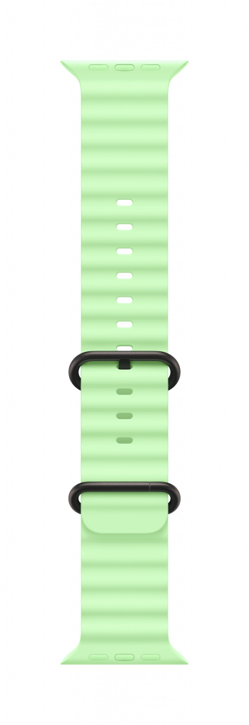 Het Ocean-bandje is gemaakt van hoogwaardig elastomeer en heeft een buisjesstructuur, zodat het goed meerekt en perfect om je pols past, zelfs over een wetsuit. De roestbestendige titanium gesp en het verstelbare oog houden het bandje ook tijdens watersporten met hoge snelheden stevig op z’n plek.