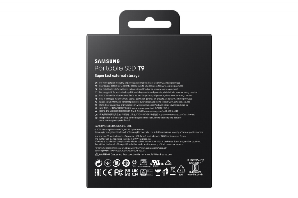 De T9 is uitgerust met Dynamic Thermal Guard van Samsung. Het apparaat presteert dus altijd optimaal met snelle overdrachtssnelheden, zonder oververhit te raken. Bovendien is de T9 ontworpen in overeenstemming met de internationale veiligheidsnorm IEC 62368-1. Zo ben je verzekerd van optimale veiligheid.