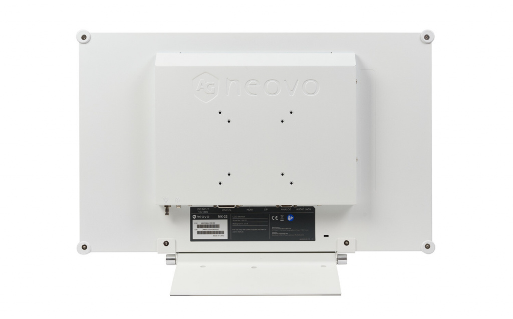 Dankzij de zuur- en alkaliwerende coatingbehandeling van NeoV™ Optisch glas is de MX-serie bestand tegen reiniging en desinfectie. Met schermen die ook versterkt zijn door hun metalen behuizing, beschermt deze eigen glastechnologie hen tegen krassen of andere schade en wordt de beeldkwaliteit aanzienlijk verbeterd.