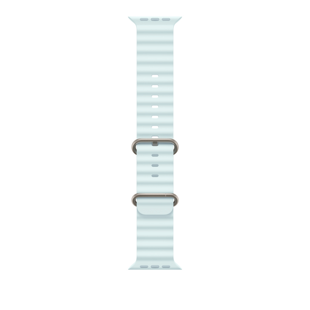 Het Ocean-bandje is gemaakt van hoogwaardig elastomeer en heeft een buisjesstructuur, zodat het goed meerekt en perfect om je pols past, zelfs over een wetsuit. De roestbestendige titanium gesp en het verstelbare oog houden het bandje ook tijdens watersporten met hoge snelheden stevig op z’n plek.