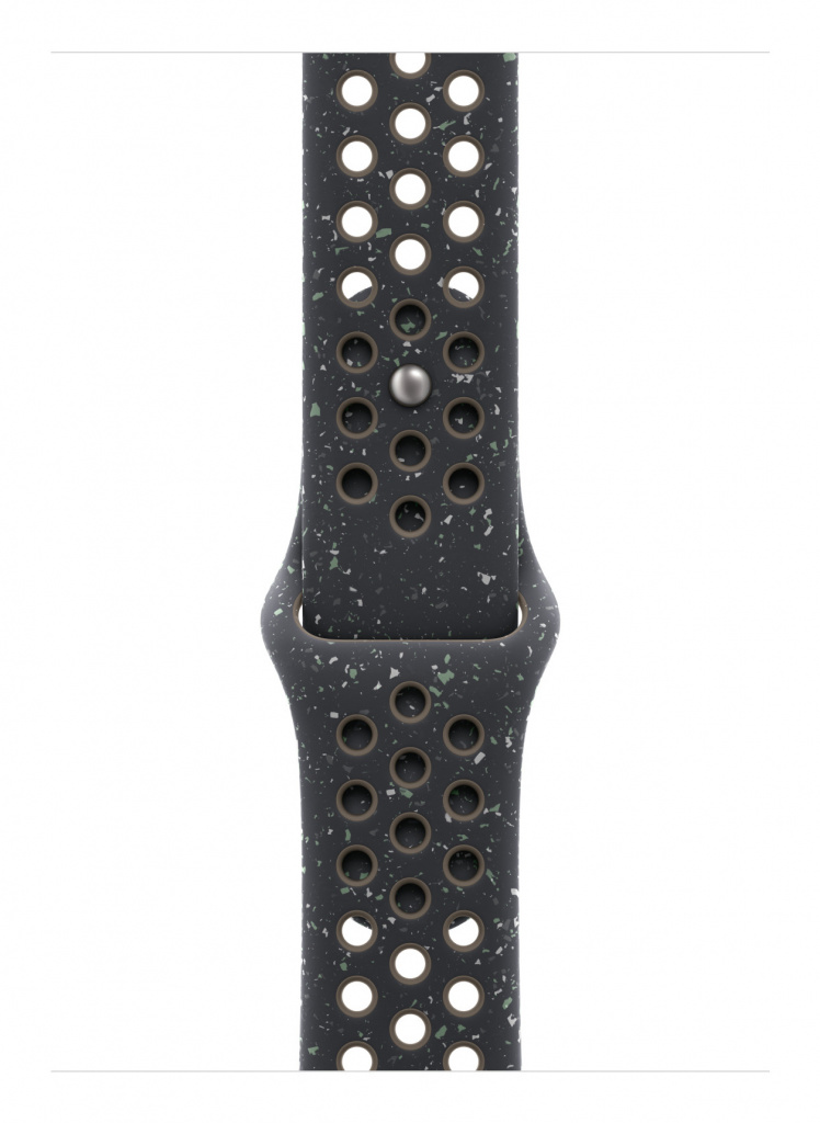 De bandjes zijn gemaakt met een onder druk gevormde gaatjes­­structuur voor meer ventilatie. Ze zijn uitermate sterk en toch verrassend zacht. In de bandjes zijn kleurrijke snippers verwerkt in een willekeurig patroon. Daardoor is elk exemplaar uniek. Het soepele materiaal valt mooi rond je pols en voelt prettig op je huid. De nieuwe aluminium pinsluiting heeft een mooie, matte afwerking.