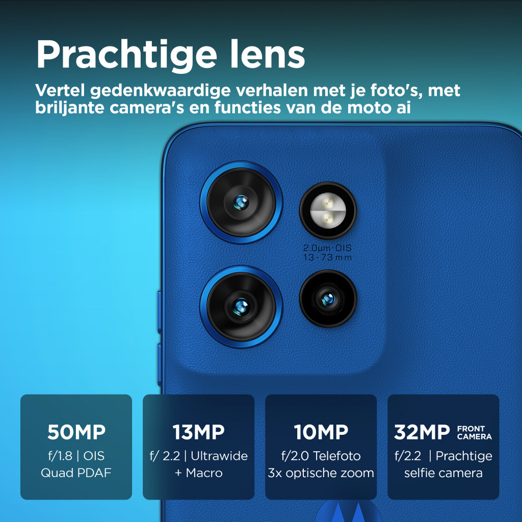 Maak kennis met de motorola edge 50 neo voor moeiteloze creativiteit in een compacter formaat. Met zijn minimalistische design en eersteklas materialen vormt deze smartphone de belichaming van verfijning. Hiermee kun je prachtige verhalen vertellen met foto’s en video’s van het hoogste niveau, mogelijk gemaakt door moto ai. Bekijk, bewerk en deel ze in bioscoopkwaliteit op een 6,36-inch Super HD (1220p) pOLED-display. En laad snel op, zodat je kunt blijven creëren dankzij 68 W TurboPower™ opladen. En profiteer vandaag nog van adembenemende prestaties, terwijl je recht hebt op vijf upgrades van het besturingssysteem en beveiligingsupdates tot en met 2029. Dit is de motorola edge 50 neo. Meer dan een smartphone. Een waar kunstwerk.