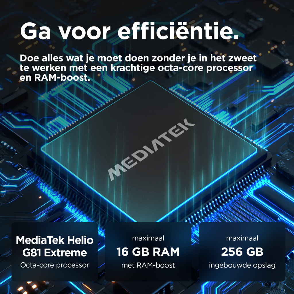 Ervaar adembenemend beeld en geluid met de nieuwe moto g05. Kijk je favoriete series en films op een superhelder display van 6,67 inch zelfs buiten in het zonlicht. En luister naar geluid overal om je heen dankzij krachtige stereoluidsprekers met Basversterking. Maak prachtig scherpe foto’s, dag en nacht, met het Quad Pixel-camerasysteem van 50 MP(2) met AI-powered portret. Verhoog je snelheid met superefficiënte prestaties en maximaal 12 GB RAM beschikbaar met RAM-boost(5). Met een afwerking van vegan leer, een waterafstotend design(4) en Corning® Gorilla® Glass 3 gaat de stijlvolle moto g05 lang mee. Vertrouw op een accu van 5200 mAh met een lange accuduur + TurboPower™ opladen. En krijg heel veel opslag voor je content en creaties. De moto g05 is in elk opzicht geweldig.