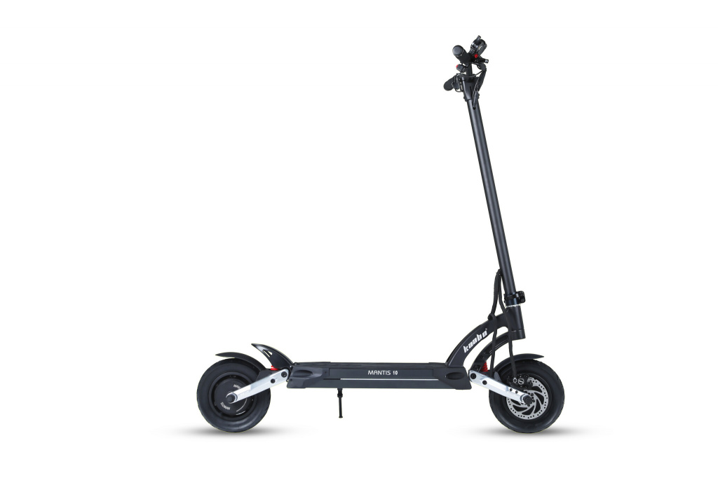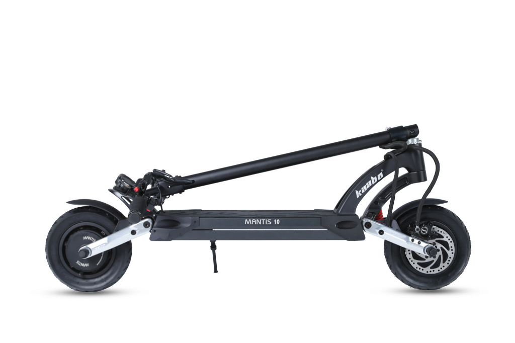 Kaabo Mantis 10 Eco. Soort: Klassieke step, Maximum snelheid: 55 km/h, Maximaal gewicht belasting: 100 kg. Batterij capaciteit: 18,2 Ah, Batterijtechnologie: Lithium-Ion (Li-Ion), Motor vermogen: 800 W. Breedte: 560 mm, Diepte: 1230 mm, Hoogte: 1267 mm